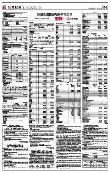 国投新集能源股份有限公司公告(系列) 2012-08-24 来源:证券时报网 作者: