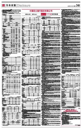 证券简称:民生银行 证券代码:600016 中国民生银行股份有限公司2012半年度报告摘要 2012-08-24 来源:证券时报网 作者: