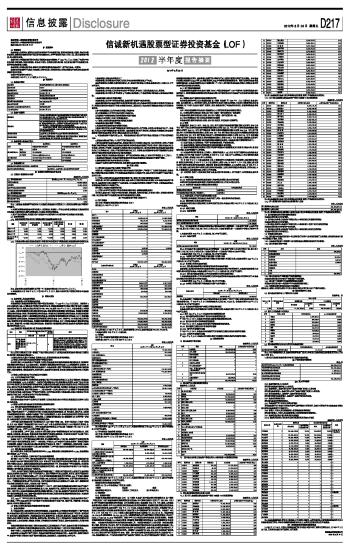 基金管理人:信诚基金管理有限公司 基金托管人:中国建设银行股份有限公司 送出日期:2012年8月24日 §1 重要提示 1.1 重要提示 基金管理人的董事会、董事保证本报告所载资料不存在虚假记载、误导性陈述或重大遗漏,并对其内容的真实性、准确性和完整性承担个别及连带的法律责任。本半年度报告已经三分之二以上独立董事签字同意,并由董事长签发。 基金托管人中国建设银行股份有限公司根据本基金合同规定,于2012年8月22日复核了本报告中的财务指标、净值表现、利润分配情况、财务会计报告、投资组合报告等内容,保证复核内容不存在虚假记载、误导性陈述或者重大遗漏。 基金管理人承诺以诚实信用、勤勉尽责的原则管理和运用基金资产,但不保证基金一定盈利。 基金的过往业绩并不代表其未来表现。投资有风险,投资者在作出投资决策前应仔细阅读本基金的招募说明书及其更新。 本报告中财务资料未经审计。 本报告期自2012年1月1日起至6月30日止。 §2 基金简介 2.1 基金基本情况 ■ 2.2 基金产品说明 ■ 2.3 基金管理人和基金托管人 ■ 2.4 信息披露方式 ■ §3 主要财务指标和基金净值表现 3.1 主要会计数据和财务指标 金额单位:人民币元 ■ 注:1、上述基金业绩指标不包括持有人认购或交易基金的各项费用,计入费用后实际收益水平要低于所列数字。 2、本期已实现收益指基金本期利息收入、投资收益、其他收入(不含公允价值变动收益)扣除相关费用后的余额,本期利润为本期已实现收益加上本期公允价值变动收益。 3、期末可供分配利润,采用期末资产负债表中未分配利润与未分配利润中已实现部分的孰低数。 3.2 基金净值表现 3.2.1 基金份额净值增长率及其与同期业绩比较基准收益率的比较 ■ 3.2.2 自基金合同生效以来基金份额累计净值增长率变动及其与同期业绩比较基准收益率变动的比较 ■ 注:1、基金合同生效起至披露时点不满一年(本基金合同生效日为2011年8月1日)。 2、本基金建仓日自2011年8月1日至2012年1月31日,建仓日结束时资产配置比例符合本基金基金合同规定。 §4 管理人报告 4.1 基金管理人及基金经理情况 4.1.1 基金管理人及其管理基金的经验 本基金管理人信诚基金管理有限公司经中国证监会批准,于2005年9月30日正式成立,注册资本2亿元,注册地为上海。公司股东为中信信托有限责任公司、英国保诚集团股份有限公司和中新苏州工业园区创业投资有限公司,各股东出资比例分别为49%、49%、2%。截至2012年6月30日,本基金管理人共管理17只基金,分别为信诚四季红混合型证券投资基金、信诚精萃成长股票型证券投资基金、信诚盛世蓝筹股票型证券投资基金、信诚三得益债券型证券投资基金、信诚经典优债债券型证券投资基金、信诚优胜精选股票型证券投资基金、信诚中小盘股票型证券投资基金、信诚深度价值股票型证券投资基金(LOF)、信诚增强收益债券型证券投资基金、信诚金砖四国积极配置证券投资基金(LOF)、信诚中证500指数分级证券投资基金、信诚货币市场证券投资基金、信诚新机遇股票型证券投资基金(LOF)、信诚全球商品主题证券投资基金(LOF)、信诚沪深300指数分级证券投资基金、信诚双盈分级债券型证券投资基金和信诚周期轮动股票型证券投资基金(LOF)。 4.1.2基金经理(或基金经理小组)及基金经理助理简介 ■ 注:1.任职日期和离任日期一般情况下指公司作出决定之日;若该基金经理自基金合同生效日起即任职,则任职日期为基金合同生效日。 2.证券从业的含义遵从行业协会《证券业从业人员资格管理办法》的相关规定。 4.2管理人对报告期内本基金运作遵规守信情况的说明 在本报告期内,本基金管理人严格按照《证券投资基金法》和其他相关法律法规的规定以及《信诚新机遇股票型证券投资基金(LOF)基金合同》、《信诚新机遇股票型证券投资基金(LOF)招募说明书》的约定,本着诚实信用、勤勉尽职的原则管理和运用基金财产。本基金管理人通过不断完善法人治理结构和内部控制制度,加强内部管理,规范基金运作。本报告期内,基金运作合法合规,没有发生损害基金份额持有人利益的行为。 4.3管理人对报告期内公平交易情况的专项说明 4.3.1 公平交易制度的执行情况 根据中国证监会颁布的《证券投资基金管理公司公平交易制度指导意见》,以及公司拟定的《信诚基金公平交易管理制度v1.2》,公司采取了一系列的行动实际落实公平交易管理的各项要求。各部门在公平交易执行中各司其职,投资研究前端不断完善研究方法和投资决策流程,确保各投资组合享有公平的投资决策机会,建立公平交易的制度环境;交易环节加强交易执行的内部控制,利用恒生交易系统公平交易相关程序,及其它的流程控制,确保不同基金在一、二级市场对同一证券交易时的公平;公司同时不断完善和改进公平交易分析系统,在事后加以了严格的行为监控,分析评估以及报告与信息披露。当期公司整体公平交易制度执行情况良好,未发现有违背公平交易的相关情况。 4.3.2 异常交易行为的专项说明 报告期内本基金未有参与交易所公开竞价同日反向交易成交较少的单边交易量超过该证券当日成交量5%的交易。 4.4管理人对报告期内基金的投资策略和业绩表现的说明 4.4.1 报告期内基金投资策略和运作分析 2012年上半年,欧元区和美国经