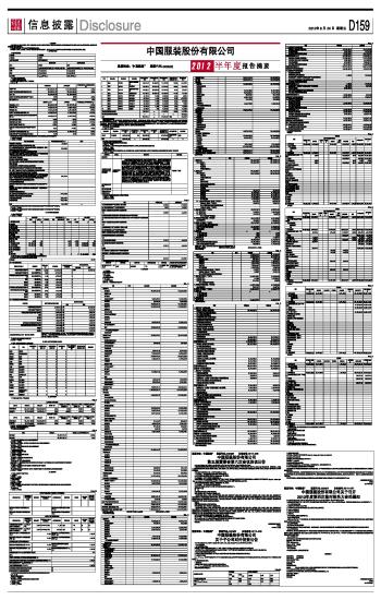 中国服装股份有限公司公告(系列) 2012-08-24 来源:证券时报网 作者: