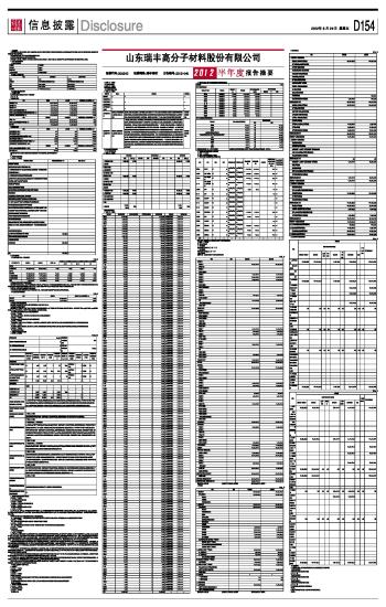 山东瑞丰高分子材料股份有限公司2012半年度报告摘要 2012-08-24 来源:证券时报网 作者: