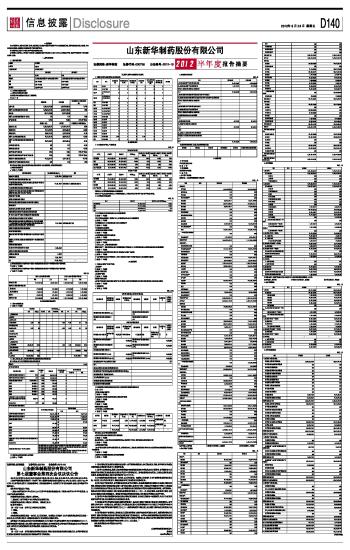 证券简称:新华制药 证券代码:000756 公告编号:2012-20 山东新华制药股份有限公司第七届董事会第四次会议决议公告 2012-08-24 来源:证券时报网 作者: