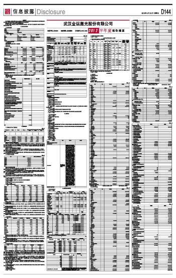 武汉金运激光股份有限公司2012半年度报告摘要 2012-08-24 来源:证券时报网 作者:
