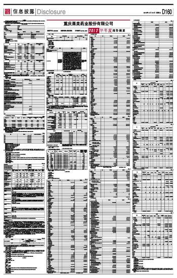 重庆莱美药业股份有限公司2012半年度报告摘要