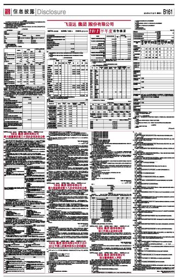 飞亚达(集团)股份有限公司2012半年度报告摘要