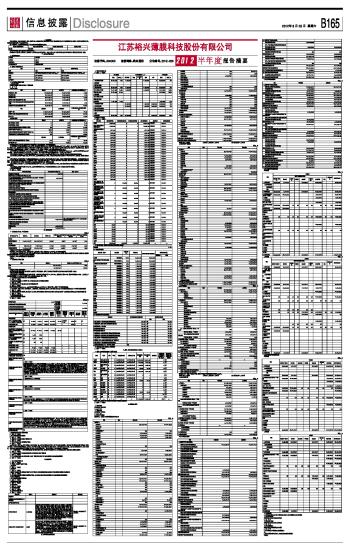 江苏裕兴薄膜科技股份有限公司2012半年度报告摘要