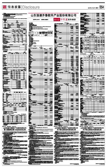 山东浪潮齐鲁软件产业股份有限公司2012半年度报告摘要