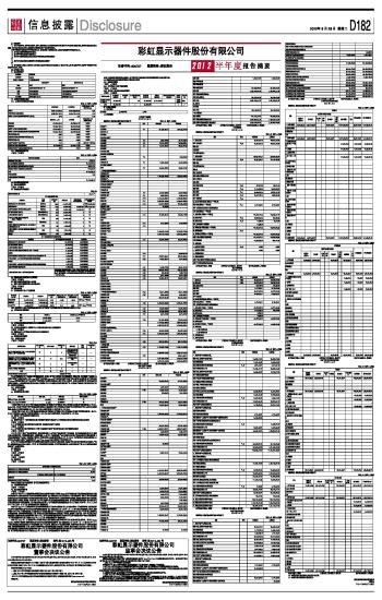 彩虹显示器件股份有限公司2012半年度报告摘要 2012-08-28 来源:证券时报网 作者: