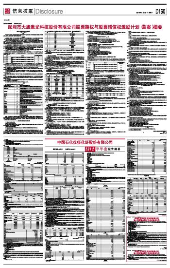 (上接D157版) 深圳市大族激光科技股份有限公司 二O一二年八月 声明 本公司及全体董事、监事保证本激励计划及其摘要不存在虚假记载、误导性陈述或重大遗漏,并对其真实性、准确性、完整性承担个别和连带的法律责 特别提示 1、本激励计划依据《中华人民共和国公司法》、《中华人民共和国证券法》、《上市公司股权激励管理办法(试行)》及其他有关法律、法规、规范性文件,以及《深圳市大族激光科技股份有限公司章程》制定。 2、深圳市大族激光科技股份有限公司(以下简称“大族激光”或“公司”)拟向中国国籍的激励对象授予不超过4,648.7558万份的股票期权(以最终实际授予的数量为准),涉及的标的股票种类为人民币 A 股普通股。每份股票期权拥有在有效期内以行权价格6.14元和行权条件购买 1 股大族激光股票的权利。本计划的股票来源为大族激光向激励对象定向发行股票。 3、大族激光拟向非中国国籍的激励对象授予123.528万份股票增值权。股票增值权不涉及到实际股份,以大族激光股票作为虚拟股票标的。每份股票增值权拥有在有效期内以行权价格6.14元和行权条件执行一次增值权收益的权利。如行权日公司股票收盘价格高于行权价格,每份股票增值权可获得每股价差收益,大族激光将以现金方式支付行权日公司股票收盘价格与行权价格之间的差额。 4、股票期权及股票增值权对应的公司股票数量分别占本激励计划签署时大族激光股本总额104,439.66万股的4.451%及0.118%,合计不超过公司股本总额的4.569%。 5、行权安排:本计划有效期为自权益工具授权之日起计算,最长不超过 4 年。本计划授予的权益工具自本期激励计划授权日起满12个月后,激励对象应在未来36个月内分三期行权。行权期及各期行权时间安排如下表所示: ■ 6、主要行权条件:在本股权激励计划有效期内,以 2011 年净利润为基数,2012 -2014年相对于2011年的净利润增长率分别不低于10%、25%、45%。2012 -2014年加权平均净资产收益率分别不低于 10%。 以上净利润增长率与净资产收益率指标均以扣除非经常性损益后的净利润作为计算依据;若公司发生再融资行为,则融资当年以扣除融资数量后的净资产及该等净资产产生的净利润为计算依据。 7、大族激光承诺不为激励对象依据本股权激励计划获取有关权益工具提供贷款以及其他任何形式的财务资助,包括为其贷款提供担保。 8、大族激光承诺持股 5%以上的主要股东或实际控制人及其配偶、直系近亲属均未参与本激励计划。 9、大族激光承诺股权激励计划经股东大会审议通过后 30 日内,公司不进行增发新股、资产注入、发行可转债等重大事项。 10、本激励计划必须满足如下条件后方可实施:中国证券监督管理委员会备案无异议、大族激光股东大会批准。 11、公司股权激励计划的股东大会将采取现场投票与网络投票相结合的方式。公司将通过深圳证券交易所交易系统和互联网投票系统向公司股东提供网络形式的投票平台,股东可以在网络投票时间内通过上述系统行使表决权。 12、自公司股东大会审议通过股权激励计划之日起30日内,公司按相关规定召开董事会对激励对象进行授权,并完成登记、公告等相关程序。 13、本激励计划的实施不会导致公司股权分布不具备上市条件。 一、释义 以下词语如无特殊说明,在本文中具有如下含义: ■ 二、股权激励计划的目的 为进一步完善深圳市大族激光科技股份有限公司的法人治理结构,促进公司建立、健全激励约束机制,充分调动公司高层管理人员及员工的积极性,有效地将股东利益、公司利益和经营者个人利益结合在一起,使各方共同关注公司的长远发展,根据《公司法》、《证券法》、《管理办法》以及其他法律、法规、规范性文件和《公司章程》,制订本股权激励计划。 三、股权激励对象的确定依据和范围 (一)激励对象的确定依据 1、激励对象确定的法律依据 本计划的激励对象根据《公司法》、《证券法》、《管理办法》及其他有关法律、法规、规范性文件和《公司章程》的相关规定,结合公司实际情况而确定。 2、激励对象确定的职务依据 本计划的激励对象为公司高级管理人员以及公司董事会认为需要进行激励的相关员工。 (二)激励对象的范围 本激励计划涉及的激励对象包括公司高级管理人员以及董事会认为需要激励的其他人员,共计 634人,但不包括公司的独立董事、监事。公司的高级管理人员包括公司董事、副总经理、董事会秘书、财务总监。若本股权激励计划推出后以及本股权激励计划有效期内《公司章程》修改涉及高级管理人员界定的,则按修改后《公司章程》界定。除高级管理人员以外的其他激励对象,包括中层管理人员、核心技术人员、核心业务人员、子公司主要管理人员及董事会认为对公司有特殊贡献的其他人员。部分激励对象名单如下: ■ 截至 2012 年 6 月 30 日,公司总人数为 7,602 人,激励对象总数为 634人,激励对象占员工总数的比例为 8.34%。 具体激励对象名单及其分配比例由公司董事会审定,公司监事会核查,需报经公司股东大会批准的还应当履行相关程序。 四、本计划所涉及的标的股票来源和数量 (一)授出权益工具的数量 本计划拟向中国国籍的激励对象授予不超过4,648.7558万份的股票期权,涉及的标的股票种类为人民币 A 股普通股,约占本激