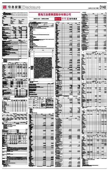 证券代码:002646 证券简称:青青稞酒 青海互助青稞酒股份有限公司2012半年度报告摘要 2012-08-28 来源:证券时报网 作者: