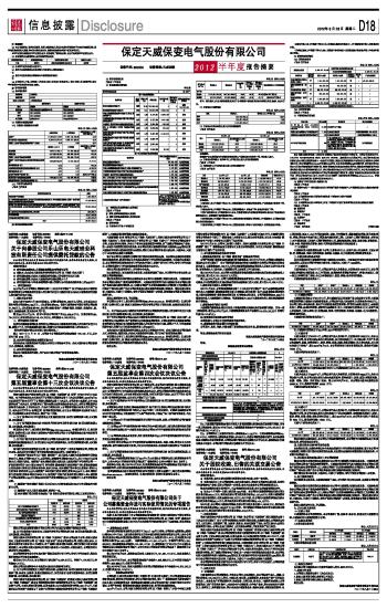保定天威保变电气股份有限公司2012半年度报告摘要