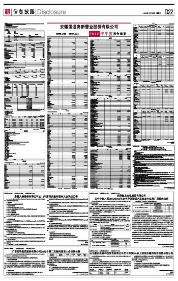 安徽国通高新管业股份有限公司2012半年度报告摘要