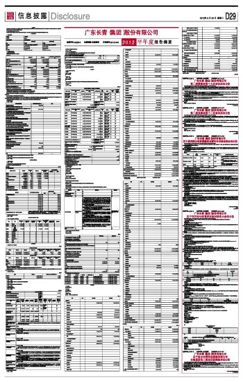 广东长青(集团)股份有限公司2012半年度报告摘要