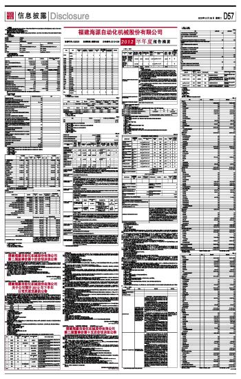 福建海源自动化机械股份有限公司2012半年度报告摘要