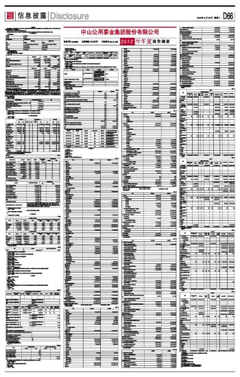 中山公用事业集团股份有限公司2012半年度报告摘要