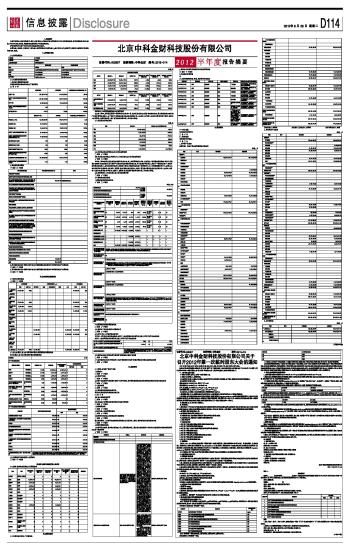 北京中科金财科技股份有限公司2012半年度报告摘要