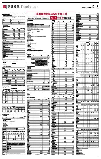 上海嘉麟杰纺织品股份有限公司2012半年度报告摘要