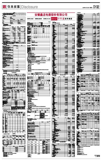 安徽鑫龙电器股份有限公司2012半年度报告摘要