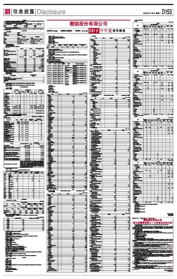 鞍钢股份有限公司2012半年度报告摘要