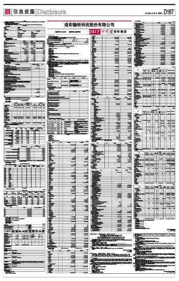 洛阳轴研科技股份有限公司2012半年度报告摘要