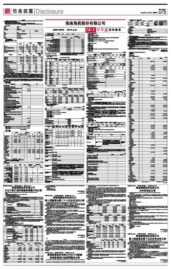 海南海药股份有限公司公告(系列) 2012-08-30 来源:证券时报网 作者:
