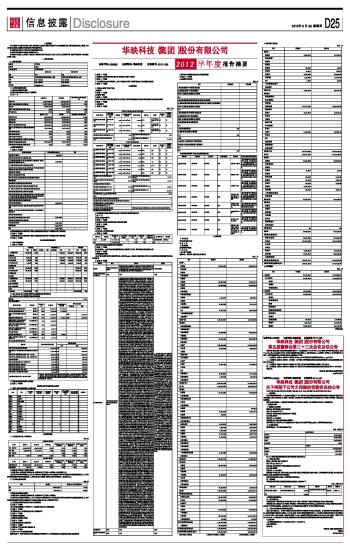 华映科技(集团)股份有限公司2012半年度报告摘要