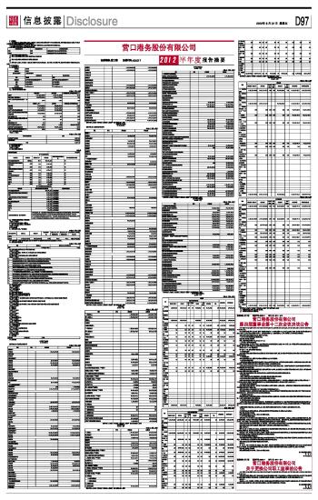 营口港务股份有限公司公告(系列) 2012-08-31 来源:证券时报网 作者: