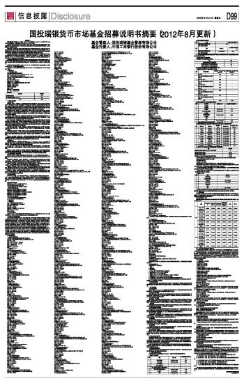 国投瑞银货币市场基金招募说明书摘要(2012年8月更新) 2012-08-31 来源:证券时报网 作者: