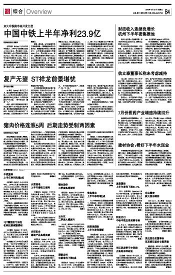加大非铁路市场开发力度 中国中铁上半年净利23.9亿 2012-08-31 来源:证券时报网 作者:张燕平