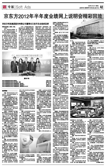 京东方2012年半年度业绩网上说明会精彩回放 2012-08-31 来源:证券时报网 作者: