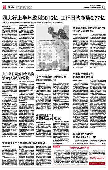 证券时报记者 潘玉蓉 中信证券今日发布的2012年半年报显示,该公司上半年实现归属于母公司股东的净利润为22.49亿,同比下降24.37%。 受外围市场波动及国内经济增速下滑的影响,A股市场持续震荡调整,上半年中信证券经纪业务、资管业务营业收入下降明显,但证券投资业务和证券承销收入增长呈现亮色。 根据半年报,上半年中信证券经纪业务实现营业收入19.39亿元,比上年同期减少22.32%,营业利润率比上年同期减少19.38个百分点;资产管理业务营业收入1.71亿元,同比减少89.94%,营业利润率比上年同期减少5.79个百分点;证券投资业务营业收入18.64亿元,同比增长32.6%,营业利润率比上年同期增加11.03个百分点;证券承销业务营业收入10.75亿元,同比增长58.71%,营业利润率比上年同期减少7.25个百分点。 此外,在中信证券资本中介型业务中,融资融券业务增长幅度也较大,6月末融资融券余额为50.14亿元,较2011年末增长91.66%。 本版导读: