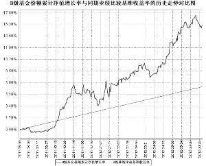 2、本基金合同生效以来基金累计净值增长率与同期业绩比较基准收益率变动的比较: (2011年8月10日至2012年6月30日) ■ ■ 1、本基金基金合同于2011年8月10日生效,截至报告期末,本基金基金合同生效不满一年; 2、按基金合同规定,本基金建仓期为6个月。截至报告期末,本基金的投资符合基金合同的相关规定:本基金投资债券等固定收益类资产占基金资产的比例不低于80%;股票等权益类资产占基金资产的比例不超过20%,现金及到期日在一年以内的政府债券占基金资产净值的比例不低于5%。 十三、费用概览 (一) 与基金运作有关的费用 1、基金费用的种类 1.基金管理人的管理费; 2.基金托管人的托管费; 3.基金财产拨划支付的银行费用; 4.基金合同生效后的基金信息披露费用; 5.基金份额持有人大会费用; 6.基金合同生效后与基金有关的会计师费和律师费; 7.基金的证券交易费用; 8.本基金从B类基金份额基金的财产中计提销售服务费; 9.依法可以在基金财产中列支的其他费用。 2、上述基金费用由基金管理人在法律规定的范围内参照公允的市场价格确定,法律法规另有规定时从其规定。 3、基金费用计提方法、计提标准和支付方式 1.基金管理人的管理费 在通常情况下,基金管理费按前一日基金资产净值的0.70%年费率计提。计算方法如下: H=E×0.70%÷当年天数 H为每日应计提的基金管理费 E为前一日基金资产净值 基金管理费每日计提,按月支付。由基金管理人向基金托管人发送基金管理费划付指令,经基金托管人复核后于次月首日起3个工作日内从基金财产中一次性支付给基金管理人,若遇法定节假日、休息日,支付日期顺延。 2.基金托管人的托管费 在通常情况下,基金托管费按前一日基金资产净值的0.20%年费率计提。计算方法如下: H=E×0.20%÷当年天数 H为每日应计提的基金托管费 E为前一日基金资产净值 基金托管费每日计提,按月支付。由基金管理人向基金托管人发送基金托管费划付指令,经基金托管人复核后于次月首日起3个工作日内从基金财产中一次性支付给基金托管人,若遇法定节假日、休息日,支付日期顺延。 3. 销售服务费 本基金A类基金份额不收取销售服务费,B类基金份额的销售服务费年费率为0.4%。本基金销售服务费将专门用于本基金的销售与基金份额持有人服务,基金管理人将在基金年度报告中对该项费用的列支情况作专项说明。 销售服务费按前一日B类基金资产净值的0.40%年费率计提。计算方法如下: H=E×0.40%÷当年天数 H为B类基金份额每日应计提的销售服务费 E为B类基金份额前一日基金资产净值 销售服务费每日计提,按月支付。由基金管理人向基金托管人发送销售服务费划付指令,基金托管人复核后于次月首日起5个工作日内从基金资产中划出,由登记结算机构代收,登记结算机构收到后按相关合同规定支付给基金销售机构等。 4.除管理费和托管费之外的基金费用,由基金托管人根据其他有关法规及相应协议的规定,按费用支出金额支付,列入或摊入当期基金费用。 4、不列入基金费用的项目 基金管理人和基金托管人因未履行或未完全履行义务导致的费用支出或基金财产的损失,以及处理与基金运作无关的事项发生的费用等不列入基金费用。基金合同生效前所发生的信息披露费、律师费和会计师费以及其他费用不从基金财产中支付。 5、基金管理人和基金托管人可根据基金发展情况调整基金管理费率和基金托管费率。基金管理人必须最迟于新的费率实施日2日前在指定媒体上刊登公告。 (二)与基金销售有关的费用 1、申购费 本基金的申购费率为零。 2、赎回费 本基金的最高赎回费率不超过5%。 本基金的赎回费用由基金份额持有人承担,其中不低于赎回费总额的25%归入基金财产,其余部分用于支付登记结算费等相关手续费。 在运作期和过渡期,本基金按不同方式收取赎回费。 (1)运作期间的赎回费 运作期内,本基金A类基金份额的赎回费率按照基金份额持有人在当期运作期的持有时间递减,即相关基金份额在当期运作期的持有时间越长,所使用的费率越低。 在适用本基金运作期的赎回费率时,本基金只计算A类基金份额持有人在当期运作期的持有期限,对于基金份额持有人在当期运作期以外的过渡期或运作期的持有期限不累计计算。具体赎回费率结构如下表所示: