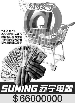 苏宁易购并购红孩子 拉开电商整合序幕此次收购价格6600万美元,苏宁业务整合能力受挑战 2012-09-26 来源:证券时报网 作者:曹攀峰 胡越