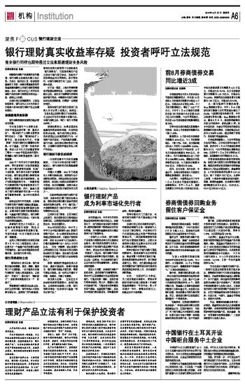 证券时报记者 伍泽琳 “债券逆回购其实就是一种接近零风险的短期贷款。” 时针已经指向9月25日晚上8点,某券商的首席投顾还在办公室里给客户打电话。 逢年过节,强势的银行理财产品与货币基金总是“诱惑”证券投资者将其存于证券保证金内的闲置资金搬家。迫于无奈,部分券商投顾纷纷将债券回购业务作为证券保证金保卫战的利器。 “目前3天期限的国债回购204003年化收益率已达16.5%,今日操作,小长假结束,10月8号资金刚好可以动用,稳健投资者可积极参与。”江海证券投顾表示。 据介绍,国债回购交易实质上是一种以交易所挂牌国债作为抵押拆借资金的信用行为。目前,散户可以参与的债券逆回购品种有13个。投资风险方面,资金融入方是将其债券质押给第三方即中登公司,如到期无法按时还款,将由结算公司先行垫付资金。所以,债券逆回购可以说是接近零风险的一个投资品种。 “长假将至,近期逆回购操作的机会较多。”华创证券深圳营业部资深投顾也认为,近期沪深两市“不给力”的下跌行情让不少投资者心灰意冷,如果不适时为客户推荐一些风险较低的固定收益类产品,客户的流失将难以避免。 据了解,近期许多投资者均收到某大型国有银行的短信提示:假期期间,投资者的三方存管账户或活期闲置资金可以做定期7天通知存款,利率为1.35%,比活期利息高3.86倍。 与此同时,基金公司也不甘示弱,纷纷为投资者抛出货币型基金产品的橄榄枝。例如,某基金公司就表示在9月25日15:00前成功申购该公司的货币基金可以享受双节假期收益。在其发给投资者的温馨短信中不忘提示,“9月20日银行货币A、B七日年化收益率为4.062%、4.312%,目前一年定存基准利率为3%。” “不仅仅是针对假期的理财产品,一些银行还通过和投资者签订相关协议,获得授权的银行可在股市收盘资金清算后,自动将闲置保证金划入理财账户。次日开盘前,保证金和当期结算利息将自动转回客户证券账户。”深圳某中型券商财富中心负责人表示,目前券商并没有与银行短期理财产品相近的产品,正式开展现金管理业务的券商也不多。在这方面,与银行、基金公司等相比,券商并无优势。 “不过,随着券商创新业务的进一步推进,现金管理业务的试点券商数量逐步增多,未来券商将能为投资者提供更多种类的低风险产品,保证金被‘抽血’的困境将有效得到缓解。”上述券商财富中心负责人表示。 本版导读: