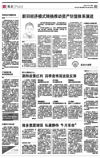 部分公募基金认为: 期待政策红利 四季度将现波段反弹 2012-10-08 来源:证券时报网 作者: