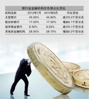 城商行揽储 普遍压力山更大 以存款为主的银行业金融机构总负债余额,经历了7月份负增长之后,8月份大部分银行业金融机构的负债余额恢复了正增长,而只有城商行继续负增长,这意味着后者的存款余额增长乏力。 >>>A6