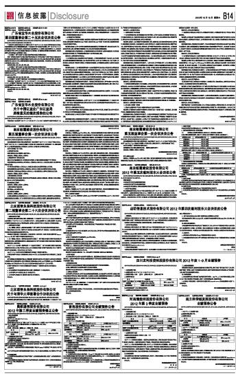 河南豫能控股股份有限公司2012年第3季度业绩预告