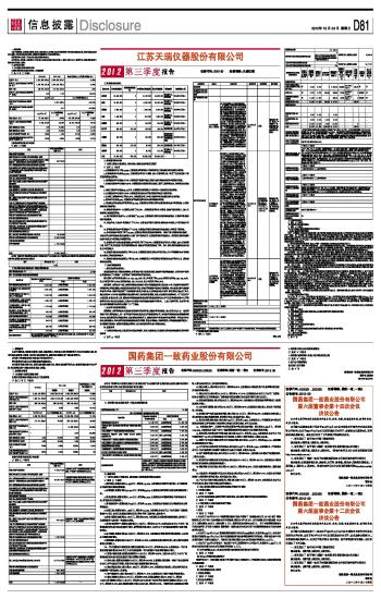 江苏天瑞仪器股份有限公司2012第三季度报告 2012-10-24 来源:证券时报网 作者: