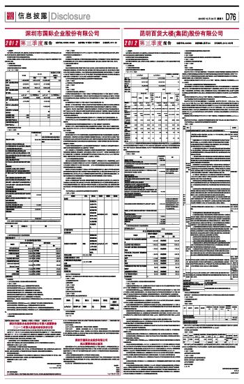 昆明百货大楼(集团)股份有限公司2012第三季度报告 2012-10-24 来源:证券时报网 作者: