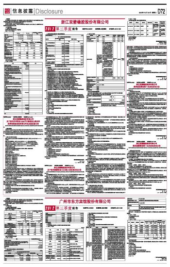 浙江双箭橡胶股份有限公司公告(系列) 2012-10-24 来源:证券时报网 作者: