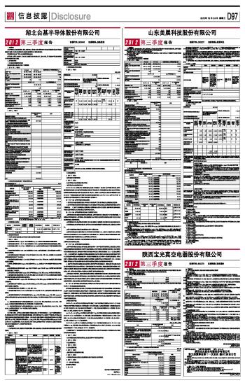 山东美晨科技股份有限公司2012第三季度报告 2012-10-24 来源:证券时报网 作者: