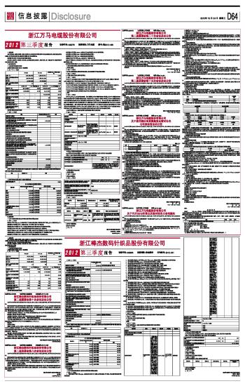 浙江棒杰数码针织品股份有限公司2012第三季度报告