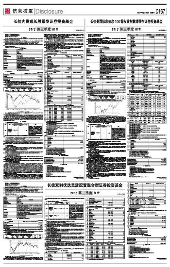 基金管理人:长信基金管理有限责任公司 基金托管人:中国银行股份有限公司 报告送出日期:2012年10月25日 §1 重要提示 基金管理人的董事会及董事保证本报告所载资料不存在虚假记载、误导性陈述或重大遗漏,并对其内容的真实性、准确性和完整性承担个别及连带责任。 基金托管人中国银行股份有限公司根据本基金合同规定,于2012年10月23日复核了本报告中的财务指标、净值表现和投资组合报告等内容,保证复核内容不存在虚假记载、误导性陈述或者重大遗漏。 基金管理人承诺以诚实信用、勤勉尽责的原则管理和运用基金资产,但不保证基金一定盈利。 基金的过往业绩并不代表其未来表现。投资有风险,投资者在作出投资决策前应仔细阅读本基金的招募说明书。 本报告中财务资料未经审计。 本报告期自2012年7月1日起至2012年9月30日止。 §2 基金产品概况 ■ §3 主要财务指标和基金净值表现 3.1 主要财务指标 单位:人民币元 ■ 注:1、本期已实现收益指基金本期利息收入、投资收益、其他收入(不含公允价值变动收益)扣除相关费用后的余额,本期利润为本期已实现收益加上本期公允价值变动收益; 2、所述基金业绩指标不包括持有人认购或交易基金的各项费用(例如,封闭式基金交易佣金、开放式基金的申购赎回费、红利再投资费、基金转换费等),计入费用后实际收益水平要低于所列数字。 3.2 基金净值表现 3.2.1 本报告期基金份额净值增长率及其与同期业绩比较基准收益率的比较 ■ 注:同期业绩比较基准以美元计价,不包含人民币汇率变动等因素产生的效应。 3.2.2 自基金合同生效以来基金累计净值增长率变动及其与同期业绩比较基准收益率变动的比较 ■ 注:1、本基金基金合同生效日为2011年3月30日,图示日期为2011年3月30日至2012年9月30日。 2、按基金合同规定,本基金自合同生效日起6个月内为建仓期,建仓期结束时,本基金各项投资比例已符合基金合同中关于投资范围、资产配置比例和投资限制的有关规定:对标普100等权重指数的成份股的投资比例为基金资产净值的80%-95%;现金、现金等价物及到期日在一年以内的美国或中国短期政府债券的比例为基金资产净值的5%-20%;主动投资部分占基金资产净值的0%-15%,投资于在美国证券市场公开发行或挂牌交易的权益类品种、固定收益类品种、金融衍生品以及有关法律法规和中国证监会允许本基金投资的其他金融工具。 3、同期业绩比较基准以美元计价,不包含人民币汇率变动等因素产生的效应。 §4 管理人报告 4.1 基金经理(或基金经理小组)简介 ■ 注:1、首任基金经理任职日期以本基金成立之日为准;新增或变更以刊登新增/变更基金经理的公告披露日为准。 2、基金经理的证券从业年限以基金经理进入证券业务相关机构的工作经历为时间计算标准。 4.2 报告期内本基金运作遵规守信情况的说明 本基金管理人在报告期内,严格遵守了《中华人民共和国证券投资基金法》及其他有关法律法规、《长信美国标准普尔100等权重指数增强型证券投资基金基金合同》的规定,勤勉尽责地为基金份额持有人谋求利益,不存在损害基金份额持有人利益的行为。 本基金将继续以取信于市场、取信于社会投资公众为宗旨,承诺将一如既往地本着诚实信用、勤勉尽责的原则管理和运用基金财产,在规范基金运作和严格控制投资风险的前提下,努力为基金份额持有人谋求最大利益。 4.3 公平交易专项说明 4.3.1 公平交易制度的执行情况 本报告期内,公司已实行公平交易制度,并建立公平交易制度体系,已建立投资决策体系,加强交易执行环节的内部控制,并通过工作制度、流程和技术手段保证公平交易原则的实现。同时,公司已通过对投资交易行为的监控、分析评估和信息披露来加强对公平交易过程和结果的监督。 4.3.2 异常交易行为的专项说明 本报告期内,未发现异常交易行为。 4.4 报告期内基金的投资策略和业绩表现说明 4.4.1 报告期内基金的投资策略和运作分析 在QE3的推出和欧债危机阶段性缓解的影响下,美国股市在三季度出现了较大幅度的上涨。此次美联储推出的量化宽松在时间和力度上都超出市场预期,对风险资产起了明显的支撑作用。此次的量化宽松在某些方面是前所未有的,比如它的实施是开放式的,在经济和就业未明显好转和通胀未成为威胁之前会持续下去。在二季度末进行的欧洲峰会上,欧盟宣布欧盟可以动用欧洲稳定机制(ESM)来直接救助欧洲银行,并且救助金在被救助银行的资本结构上可以在先前私人投资者之后。这一举措很大程度上提振了私人投资者的信心,理论上大大帮助了欧洲银行及主权国在资本市场上的融资能力。 在报告期内本基金管理人对美国经济和市场持谨慎乐观的态度。一方面QE3在中短期对美国股市的支持是明显的,其所带来的流动性对股市和其他风险资产起了一个较高的底部支撑。而且美国经济复苏的势头比较明显,在经济危机中受害最深的房地产市场在本季度也出现了明显的改善。另一方面在四季度美国股市面临着一些不确定因素,主要包括财政悬崖的解决过程和总统大选。财政悬崖的解决将是一场两党之间的讨价还价的过程,虽然某种形式的解决是较大概率事件,但出现不同程度的合作失败的可能性不能忽视,并且合作失败对美国经济的拖累非常严重。此次总统选举是近年