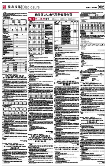 珠海万力达电气股份有限公司2012第三季度报告 2012-10-25 来源:证券时报网 作者:
