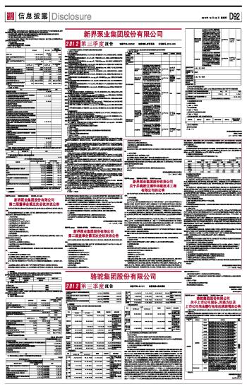 新界泵业集团股份有限公司2012第三季度报告 2012-10-25 来源:证券时报网 作者: