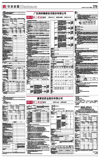 广东鸿特精密技术股份有限公司2012第三季度报告 2012-10-25 来源:证券时报网 作者: