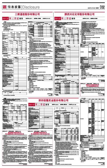 证券代码:002115 证券简称:三维通信 公告编号:2012-040 三维通信股份有限公司2012第三季度报告 2012-10-25 来源:证券时报网 作者:
