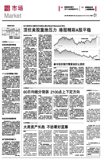 证券时报记者 刘雯亮 隔夜美股大跌1.82%,但昨日A股顶住压力低开高走,沪指收盘微涨,站稳2100点整数关口。值得一提的是,昨日香港恒生指数收报21763点,盘中最高报21802点,创出年内新高。受港股持续上涨影响,深证B指走势颇强,昨日上涨0.62%。 盘面观察看,摘帽概念、ST股等中小板块持续活跃,页岩气、稀土永磁等前期概念股持续调整,前期最热的地热能概念股昨日领跌。个股方面,两市上涨家数1065家,下跌家数1546家。截至收盘,两市共有17只非ST个股报收10%涨停,其中沪市13只深市4只;两市共14只个股收盘跌幅超过5%,多集中于深市。香港上市公司腾讯控股昨日报收270.4港元,创出其历史新高,总市值达到5004亿港元,已超过深市总市值排名前3的洋河股份、五粮液和万科A之和。 整体看来,昨日市场有以下几个特征值得关注。首先,市场中活跃的品种依然以低价超跌股、摘帽概念股和ST股为主。昨日摘帽概念股表现抢眼,在盘中上演涨停潮,秦岭水泥、安彩高科等7只个股涨停,梅雁水电连续2个交易日涨停。另外,ST股持续强势表现,包括*ST东电、*ST宝硕在内的16只ST股报收涨停。 昨日的个股表现显示,当前的A股热点仍是以低价股为核心。有分析师认为,低价股常常是市场中不太活跃的个股,有不少股票价值被低估,目前看来,具备价值回归的需求。此外,在场内资金有限的前提下,游资也对资金需求较少的低价股情有独钟。不过,业内人士普遍认为,虽然此类品种可充当短线激活人气的导火索,但由于自身基本面限制,能否主导市场展开持续上攻行情则有待观察。股指后市若要有所表现,依然需要有主流品种挺身而出。 第二,从昨日盘面看,酿酒、医药、银行、地产四大护盘主力均未能发挥作用,帮助大盘走稳的反而是电力、钢铁、汽车等前期超跌的蓝筹板块。其中,电力板块上涨1.67%,位于行业涨幅之首。国际油价大幅下跌,意味着国际煤价乃至我国煤价难有反弹。受此影响,以煤炭为原料的电力股出现了活跃走势。有意思的是,电力股的股价大多低廉,亦符合当前低价股活跃的特征。有市场人士预计,短线电力股走势或将持续乐观。 消息面上,汇丰中国10月制造业采购经理指数(PMI)初值升至49.1,创三个月新高,9月数据为47.9。该数据虽然仍在荣枯线之下,但数值回升反映经济回暖,昨日早盘股指亦是在数据公布加快攀升力度。市场人士认为,汇丰PMI指标的逐步回暖,表明国家落实政策的效果不断显现。随着经济逐步改善,四季度我国经济企稳回升概率加大,对股市中期发展会产生积极影响。 本版导读:
