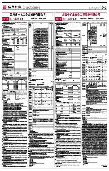 尤洛卡矿业安全工程股份有限公司2012第三季度报告