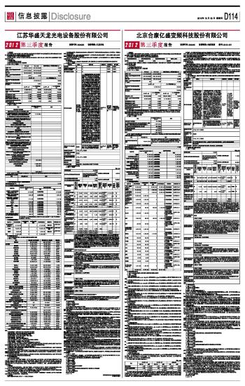 江苏华盛天龙光电设备股份有限公司2012第三季度报告